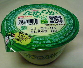 コンビニ セブンイレブンで購入したメイトーなめらかプリンの新製品「ほろにが抹茶ソース」。