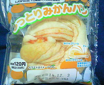 コンビニ ローソンで購入したLAWSON×山崎製パン共同企画の新製品「しっとりみかんパン」。