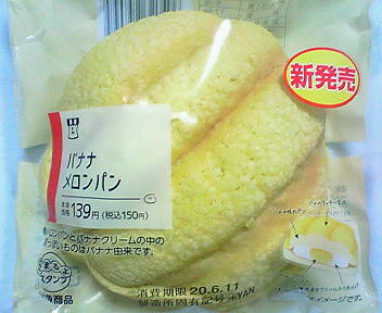コンビニ ローソンで購入した新製品のパン「バナナメロンパン」。