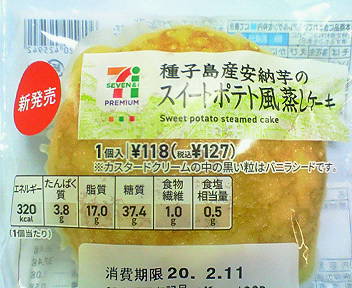 コンビニ セブンイレブンで購入した7&iプレミアムの新製品「種子島産安納芋のスイートポテト風蒸しケーキ」。