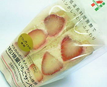 商品名のネーミングセンスはともかくとして、今までのいちごサンドとは一味違う、かなりスイーツテイストな仕上がりとなっており、見かけたらぜひ一度食べてみて欲しい、オススメのいちごサンドなのでした(^_^)