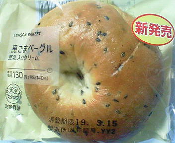 コンビニ ローソンで購入したローソンベーカリーの新製品「黒ごまベーグル」。