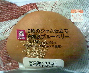 要するに2種類のジャムが入ったジャムパンのようで、これだけで十分珍しいのですが、白桃とブルーベリーの組み合わせは初めてで、さらに珍しいかも!